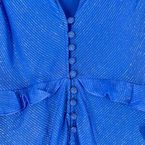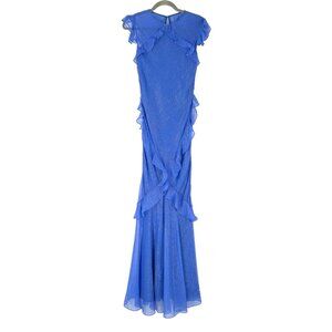 NWT Saloni Tamara Ruffle Metallic Pinstripe Maxi