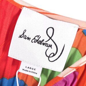 NWT Sam Edelman Women’s Midi Dress Retro Floral Plisse Bright Colorful LARGE
