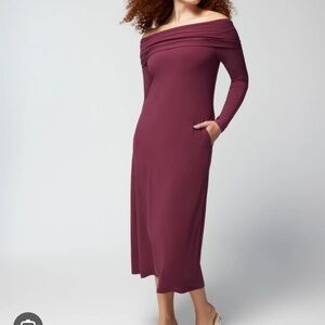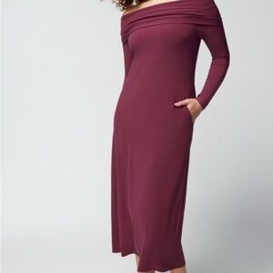 Style Tags: Soma Matte Jersey Midi Bra Dress Size Large Jersey knit off shoulder soma dress large cranberry