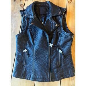 NWT! Sophie Max Women's Black Faux Leather Biker Punk Rock Vest Size Large