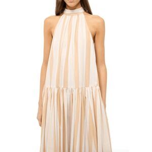 NWT Staud Marlowe Striped Halter Tie Neck Sleeveless Midi Dress Tan White Small