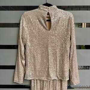 NEW with tags Sugarlips champagne sequin blouse. Blouse is conservative and elegant with mock neck, long sleeves and a keyhole neck closure. Size small - 19" pit to pit; 24" length.