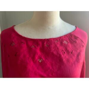 NWT This long sleeve, off the left shoulder knit top is "Magenta" Pink colored!! Around the neckline there is a floral embroidery.