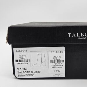 This is a pair of NWT Talbots "Emma" Wedge Suede Boots in Black size 9.5, suede in the original box. Never worn.