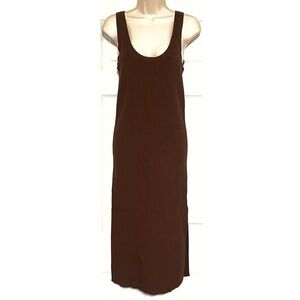 NWT The Drop Yasmine Side Slit Ribbed Scoop Neck Solid Brown Midi Dress Pullover
