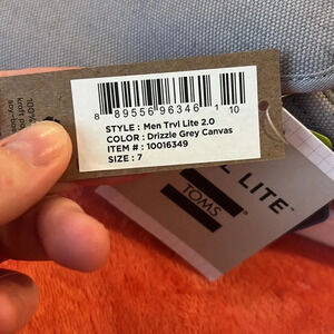 NWT** Toms travel lite 2.0, color: drizzle grey canvas men’s size 7. NWT