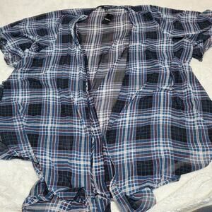 NWT Torrid Blue Black Windowpane Plaid Sheer Flowy Plus Size Kimono 4 4x 26