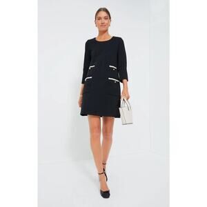 Inspired by the fine craftsmanship of a Parisian atelier, the Black Francoise Mod Mini Dress blends a 60's silhouette with minimalist details. Featuring a shift dress shape, long sleeves, and contrast pockets with buttons, this style is ultra-chic. Pair with gold jewelry for work and heels for date night!