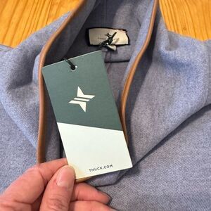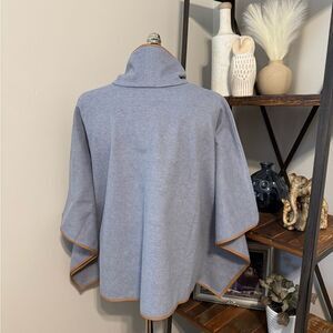 NWT Tuckernuck Women’s Leather Trim Funnel Piper Poncho One Size Slate Blue