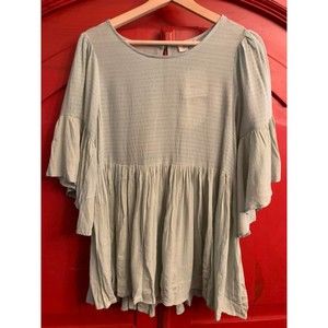 NWT Umgee Sage Green and Gold Stripes Ruffle Bottom Sleeve Retail 46$ Size SM