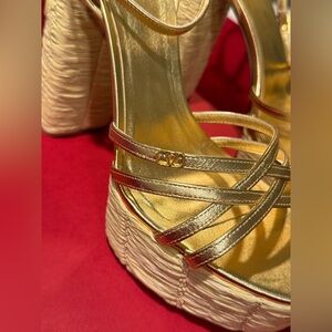 NWT - VALENTINO Garavani Flower Raffia Platform Gold Heels