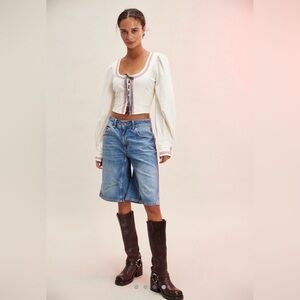 NWT Women's Free People White Boho Mada Top Corset style w/ exaggerated sleeves