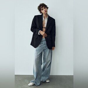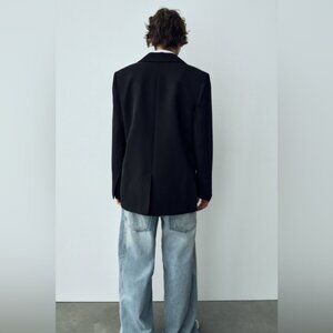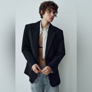 NWT ZARA BASIC Lined 2 Front Button Shoulder Pads Back Slit Blazer 2010/750 Sz M