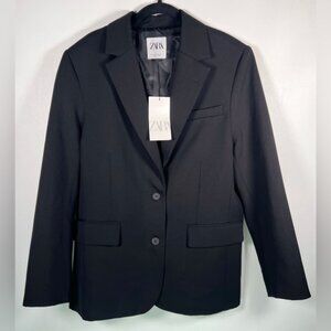 NWT ZARA BASIC Lined 2 Front Button Shoulder Pads Back Slit Blazer 2010/750 Size M