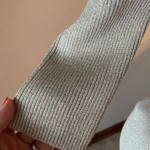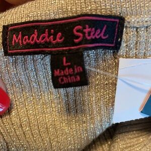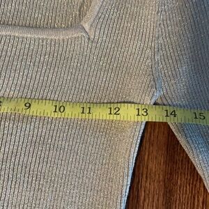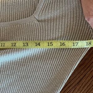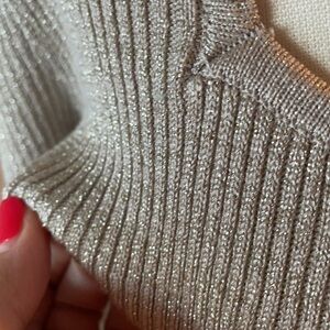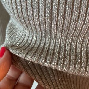 NWT juniors square neck metallic shimmer champagne beige sweater 1/2 sleeve L