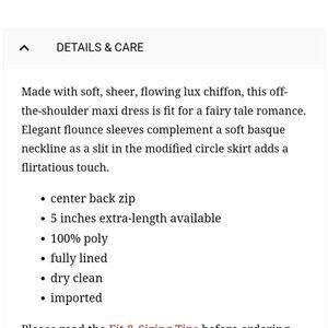 New with tag After Six Off-the-Shoulder Maxi Dress in "Tea Rose" Fushia pink purple. Basque Neck and Flounce Sleeves. Size 12 please see measurements pictures to be sure of fit. Retail: $217