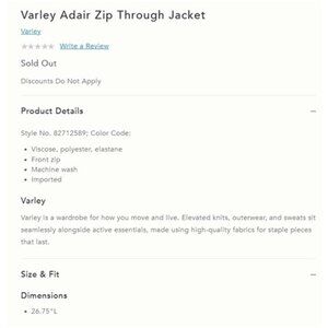 NWT-Anthropologie-Varley Adair Zip Through Jacket - Black - XL