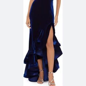 NWT Betsy & Adam Tiered Ruffle High-Low Velvet Gown