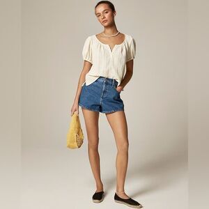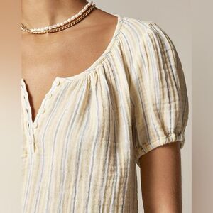 NWT J CREW Puff-sleeve henley in striped gauze in Pale Banana