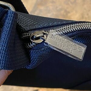 Brand new with tag. Jimmy Choo Parfums navy large weekend bag. Great for traveling, beach, gym or a short getaway on the weekend. Has adjustable strap. Comes from smoke and pet free home.