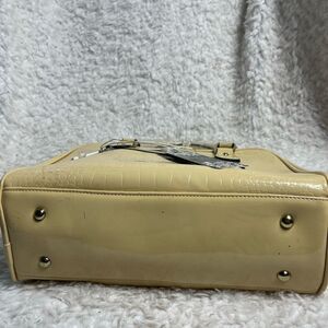 NWTLa Reine Patent Beige croc prints faux leather satchel gold tone frame accent