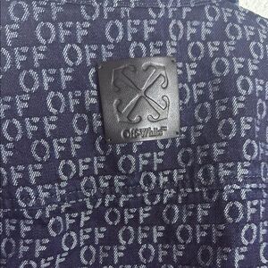 NWT- OFF-WHITE Navy Button-Up Shirt with Patterned logo Print- size 38 (Size 2)