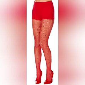 🔸️NWT Red w/Hearts Fishnet Tights Medium/Large