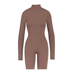 NWT SKIMS ALL-IN-ONE LONG SLEEVE MID THIGH ONESIE IN Umber