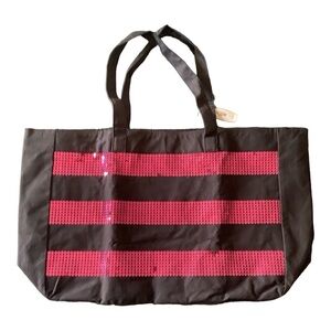Large black and pink sequin tote, large tote or overnight bag, zip top closure, large black VS logo on front, brand new with tags, measures 24x14x6 inches.
