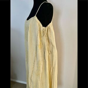 Dress with elastic round neckline and adjustable thin straps. Side ties and tonal embroidery. Interior lining. Ruffled hem. 97% cotton, 3% metallised fibre. *Brand new with tags. Authentic brand