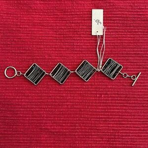 NWT pamelalynn & company black and silver color diamond shape link bracelet