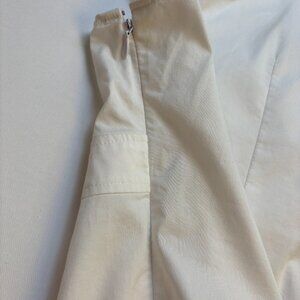 Condition: Good pre-owned condition with a minor flaw as noted above and pictured. This blouse is in great overall shape, but there is some minor, faint yellowing on the fabric panel next to the side zipper, as shown in the close-up photo.