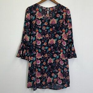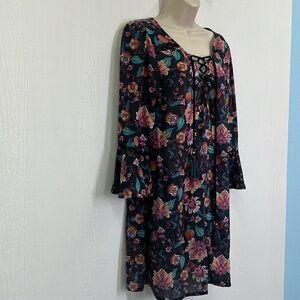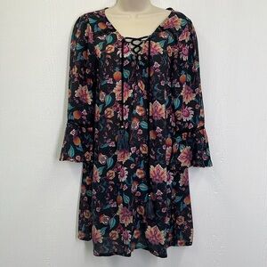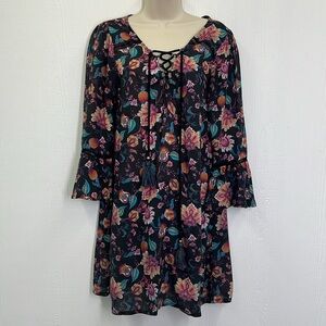 Nanette Lepore - Bright Floral Viscose Lace Up Long Sleeve Mini Dress Size Small