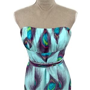 Nanette Lepore Strapless Silk Dress – Peacock Feather Print - Women's Size 4