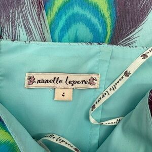 Tags: Nanette Lepore dress, silk cocktail dress, strapless summer dress, peacock feather print, wedding guest dress, resort wear, size 4 dress, boho glam, Anthropologie style, made in USA, designer silk dress, turquoise strapless dress, spring, summer, vacation, date night