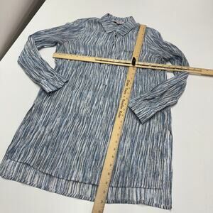 Size medium       Preowned-Good Condition            Blue Striped, Collared, Long Sleeve, Tunic Top Blouse