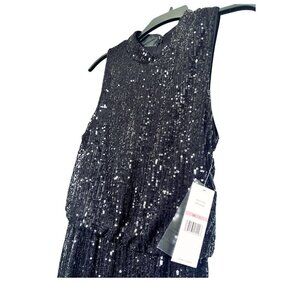 Nanette Lepore Womens Black Feather Trim Sequin High Neck Dress Sz 12 NWT
