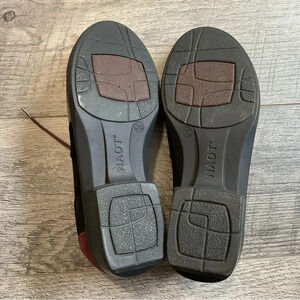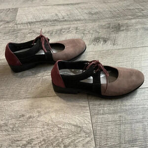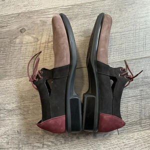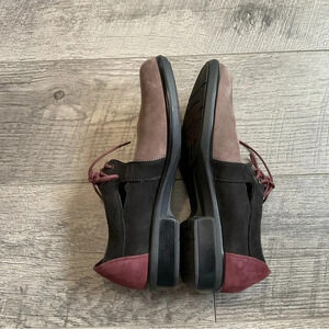 Naot Alisio Colorblock Suede Lace Up Loafer. Womens Size 36 or size 5 or 5.5. Slip resistant sole and securing laces. Colors are shiitake/black velvet/ violet nubuck. There are some marks on the top of the shoe. Gentle used condition. Normal wear. The shoes have been cleaned. See pics for conditions. No modeling or trades.