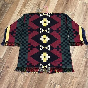 Southwestern, Hippie, Boho, Blanket Jacket, Tapestry, Aztec, Native American, Indian, Tribal, Gypsy