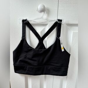 A classic sports bra features a colorblock design and just the right amount of support for a low impact workout.