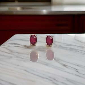 Natural Ruby Stud Earrings 14k Yellow Gold 2 TCW Certified $1,290 311044
