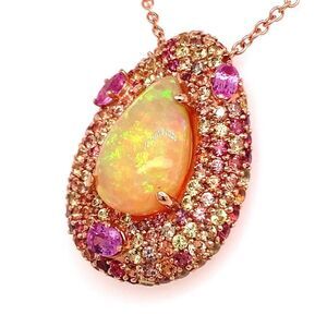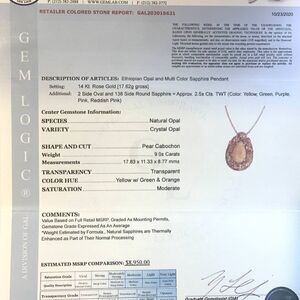 This Ethiopian Opal necklace has been Certified, Inspected, and Appraised by Gemological Appraisal Laboratory
