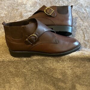 Elegant brown ankle booties by Naturalizer. Features a sleek strap design. Perfect for any occasion.