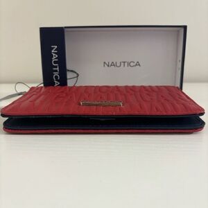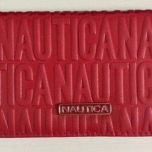 Nautica seas the day slim clutch red new! Credit card bifold clutch wallet. Repeated Emboss Logo with silver metal detail. Lots of pockets! RFID blocking protection. Red and blue