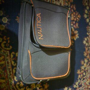 A well-maintained Blue Nautica suitcase, ready for your travels. Some signs of tearing under one of the front glove compartments, some scratches visibile.