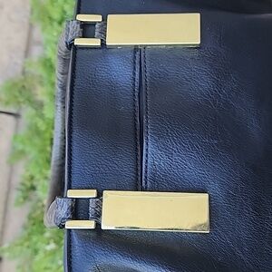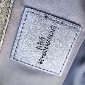 Neiman Marcus bucket bag with snakeskin embossed handles in excellent used condition. Black pebbled leather-like bag with gold accents. Deep pocket with zipper and small zipper pocket inside. Has D rings but is missing the long strap to make the bag a crossbody. Clean interior and exterior. Dimension: 13.5 inches (length) x 5.5 inches (wide) 11 inches tall. Handle drop 7 inches. Great bag