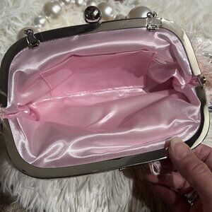 Measuring 8.5"L x 1.2"W x 8"H (22cm x 4cm x 20cm), this clutch comes with two interchangeable straps: a long silver snake chain (47.24"/120cm) and a short pearl chain (13.78"/35cm). Wear it as a shoulder bag, crossbody, or carry it elegantly by hand.