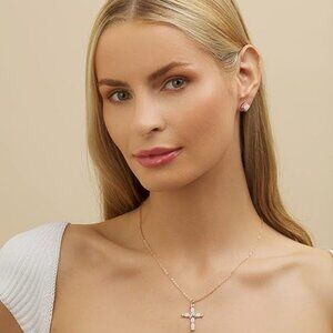Neiman Marcus Rose Gold Plated Opal Cross Necklace