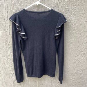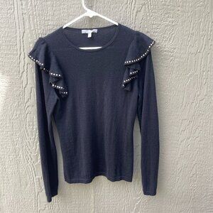 Neiman Marcus The Cashmere Collection Women's Size M Black Crewneck Studded