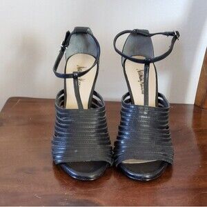 Neiman Marcus Vera Black Leather Heels with Gold Accent Size 9